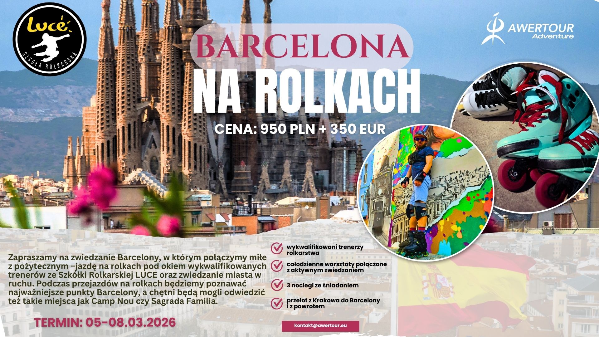 Zapraszamy na intensywny, czterodniowy wyjazd rolkowy do Barcelony, stworzony dla osób dorosłych, które chcą rozwijać swoje umiejętności jazdy w zróżnicowanych warunkach: miejskich, skateparkowych oraz podczas dłuższych przejazdów. Program obejmuje szkolenia prowadzone przez trenerów Szkoły Rolkarskiej LUCE.